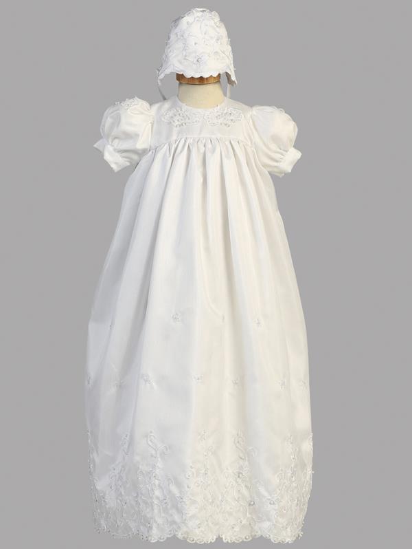 Embroidered bodice and hem with scattered beading