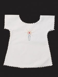 White baptismal bib with embroidered candle