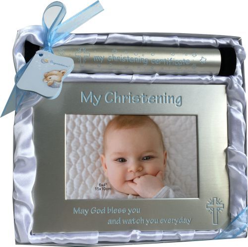 BG1187 Blue Christening Frame & Certificate Holder Set