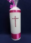 White candle with pink diamante cross