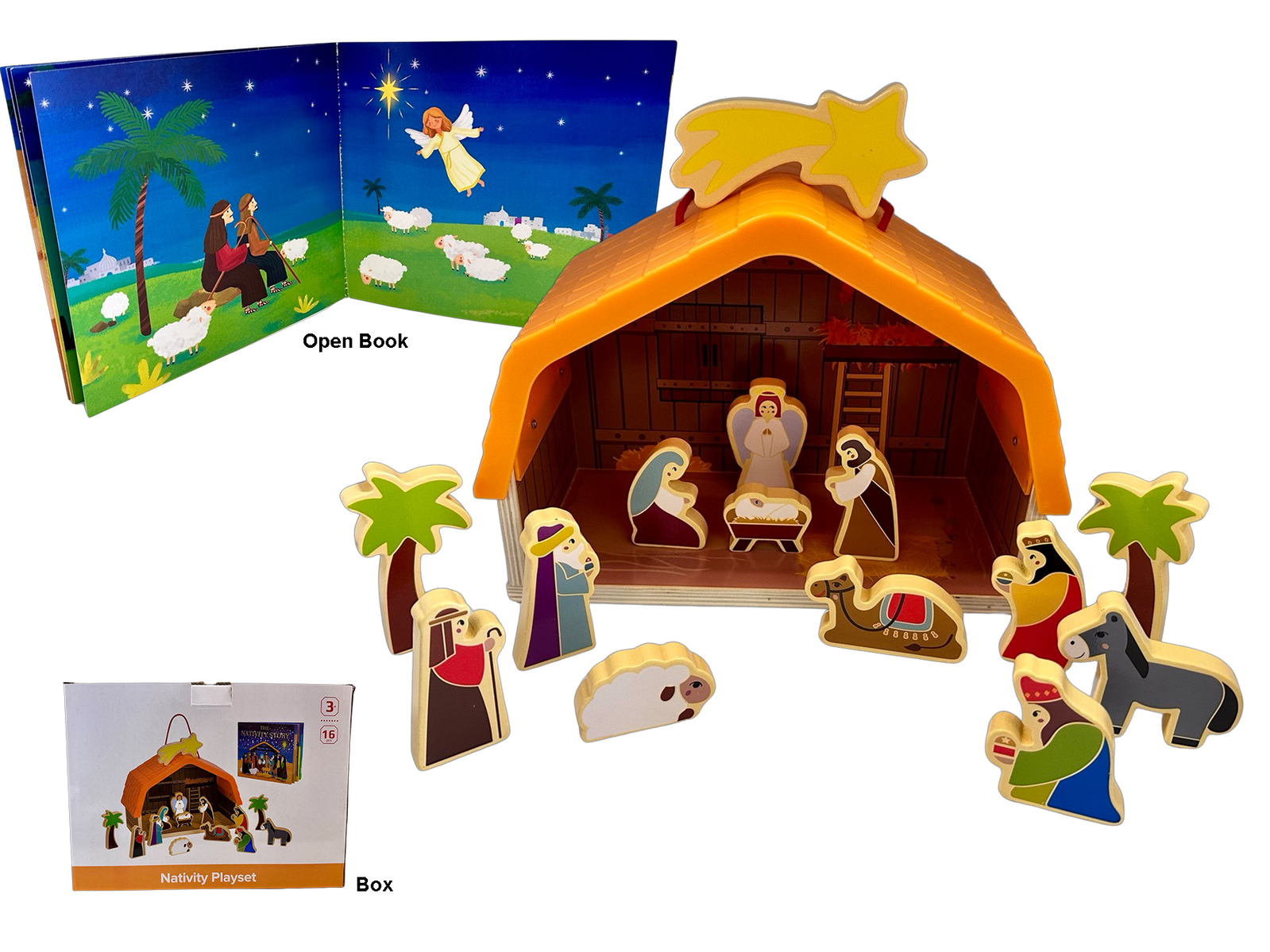 Comes with a Nativity Book and is boxed